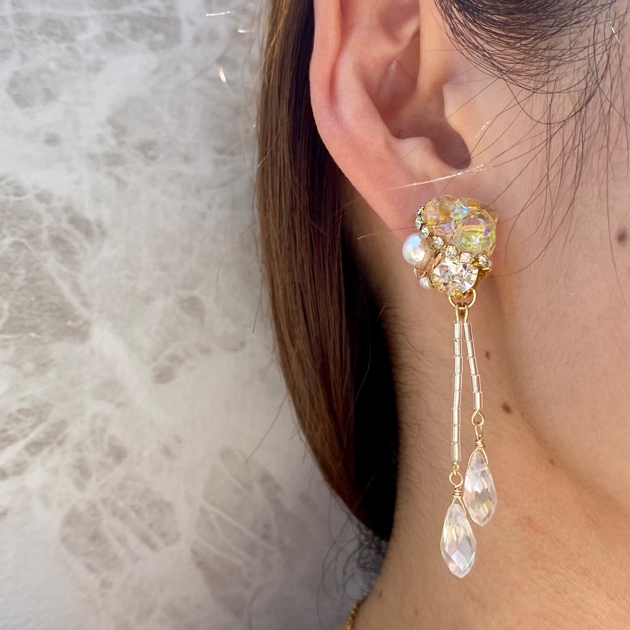 太陽の光を集めてオーロラに輝くビジューアクセサリー。