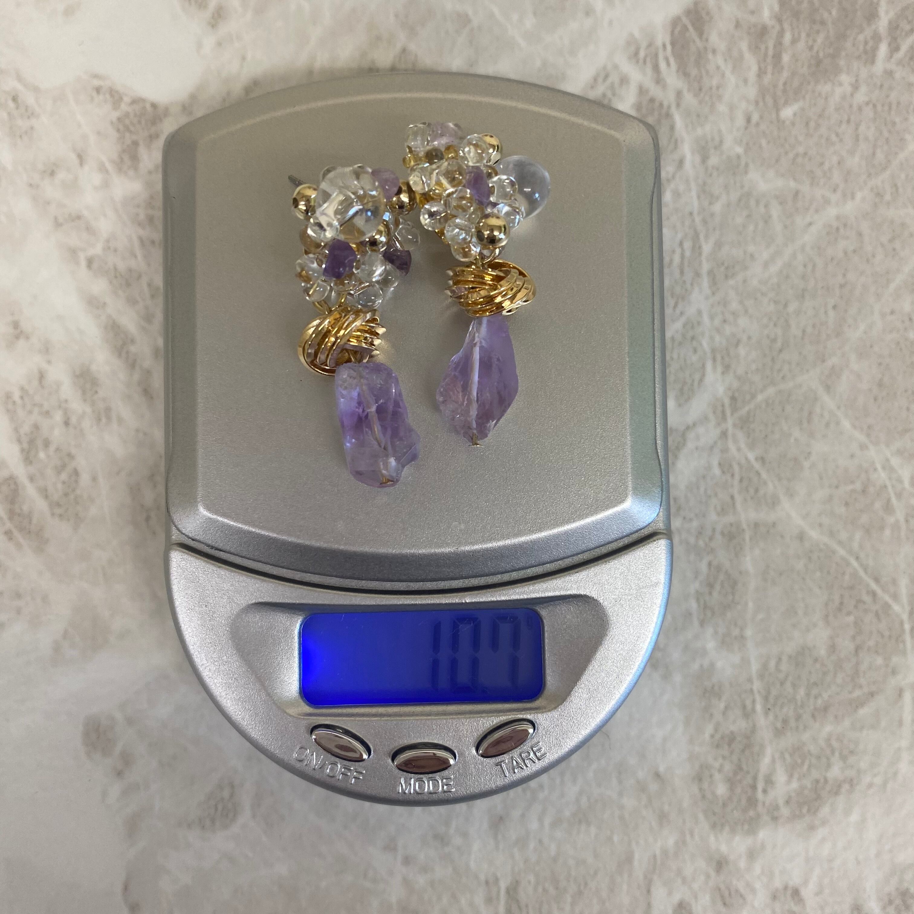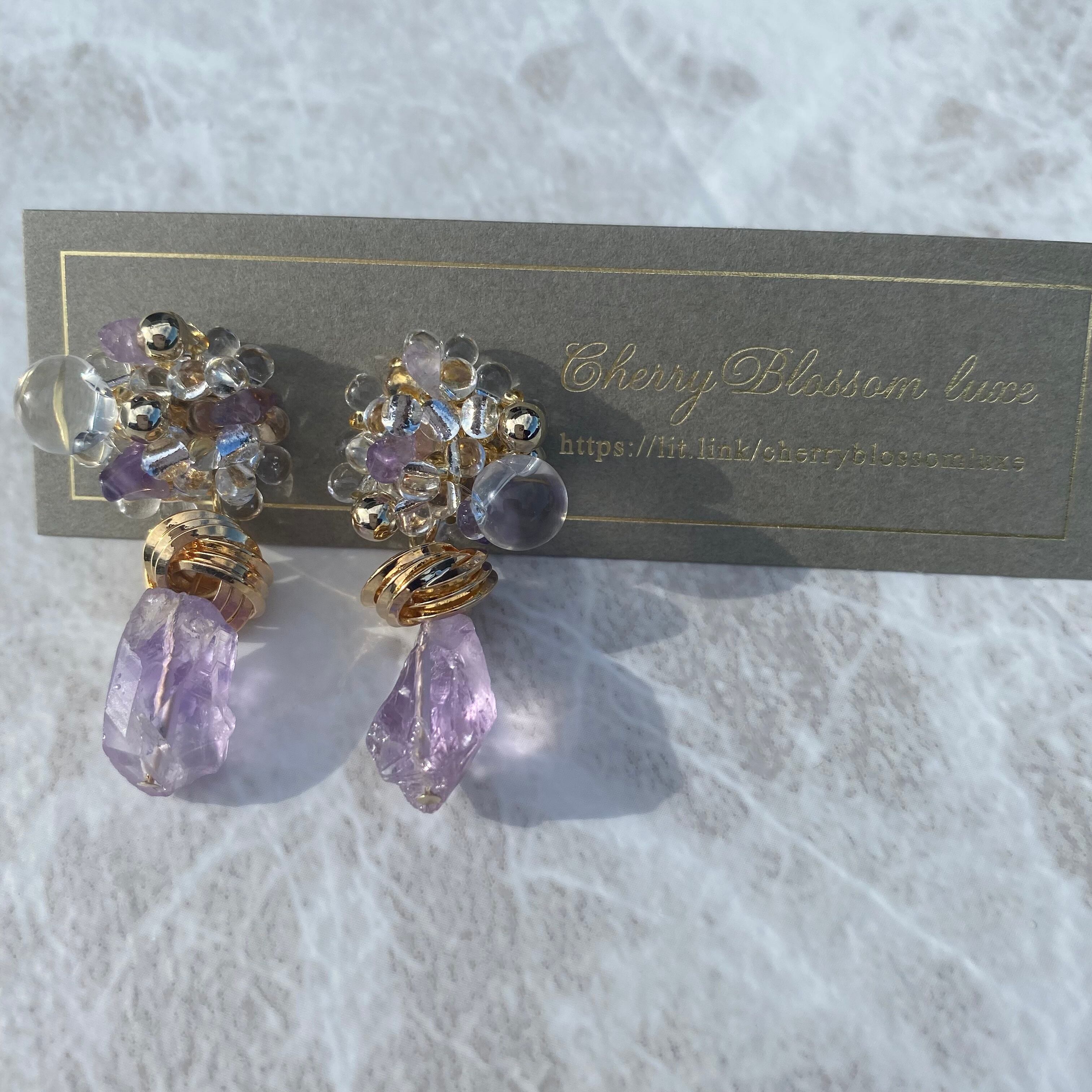 透明感溢れる淡いお色味のアメジストが揺れるアクセサリーです。