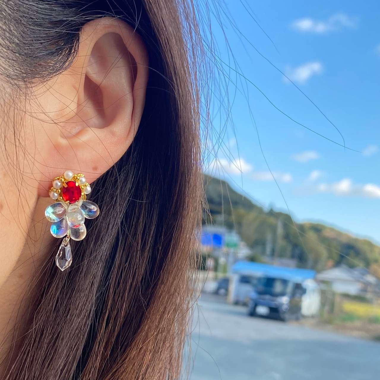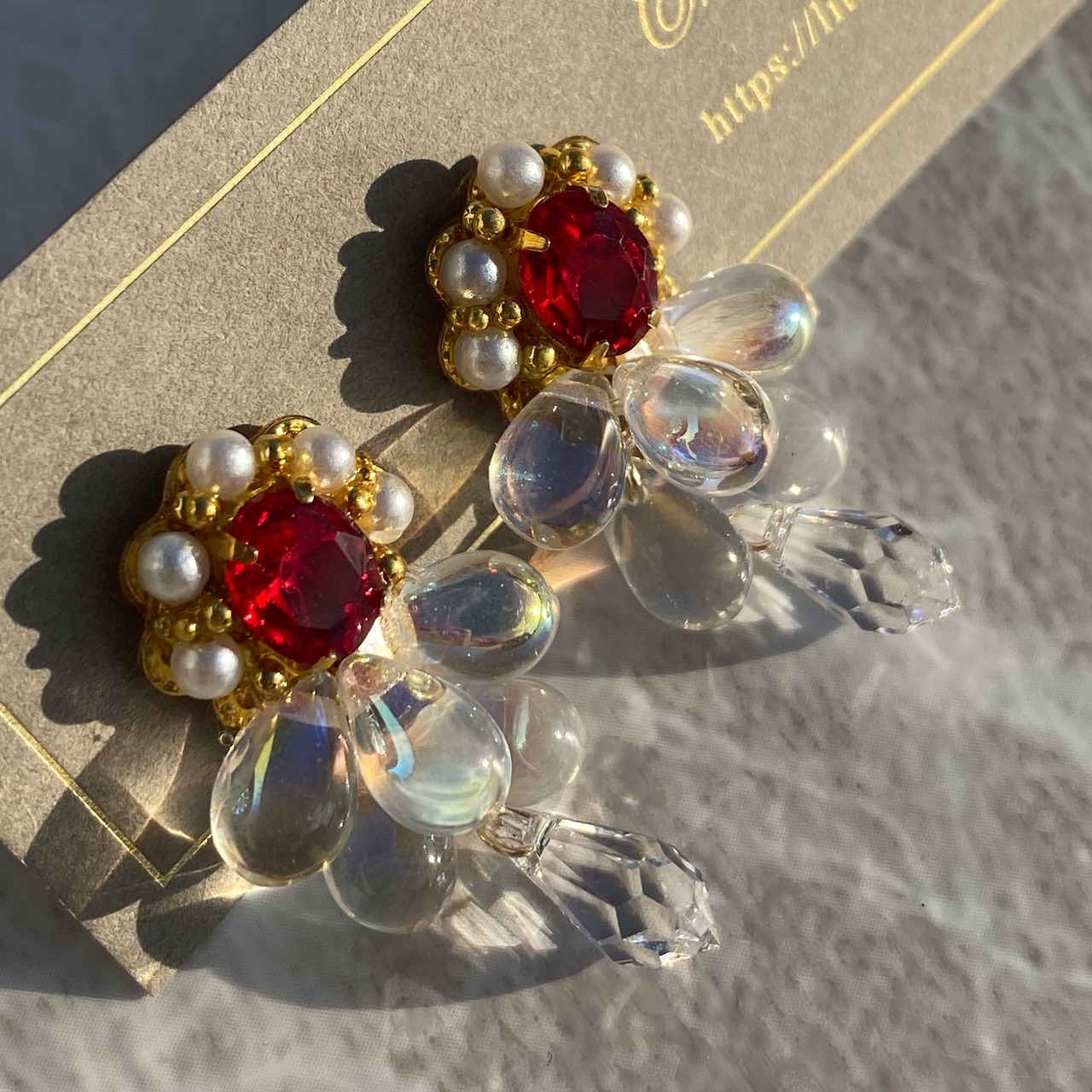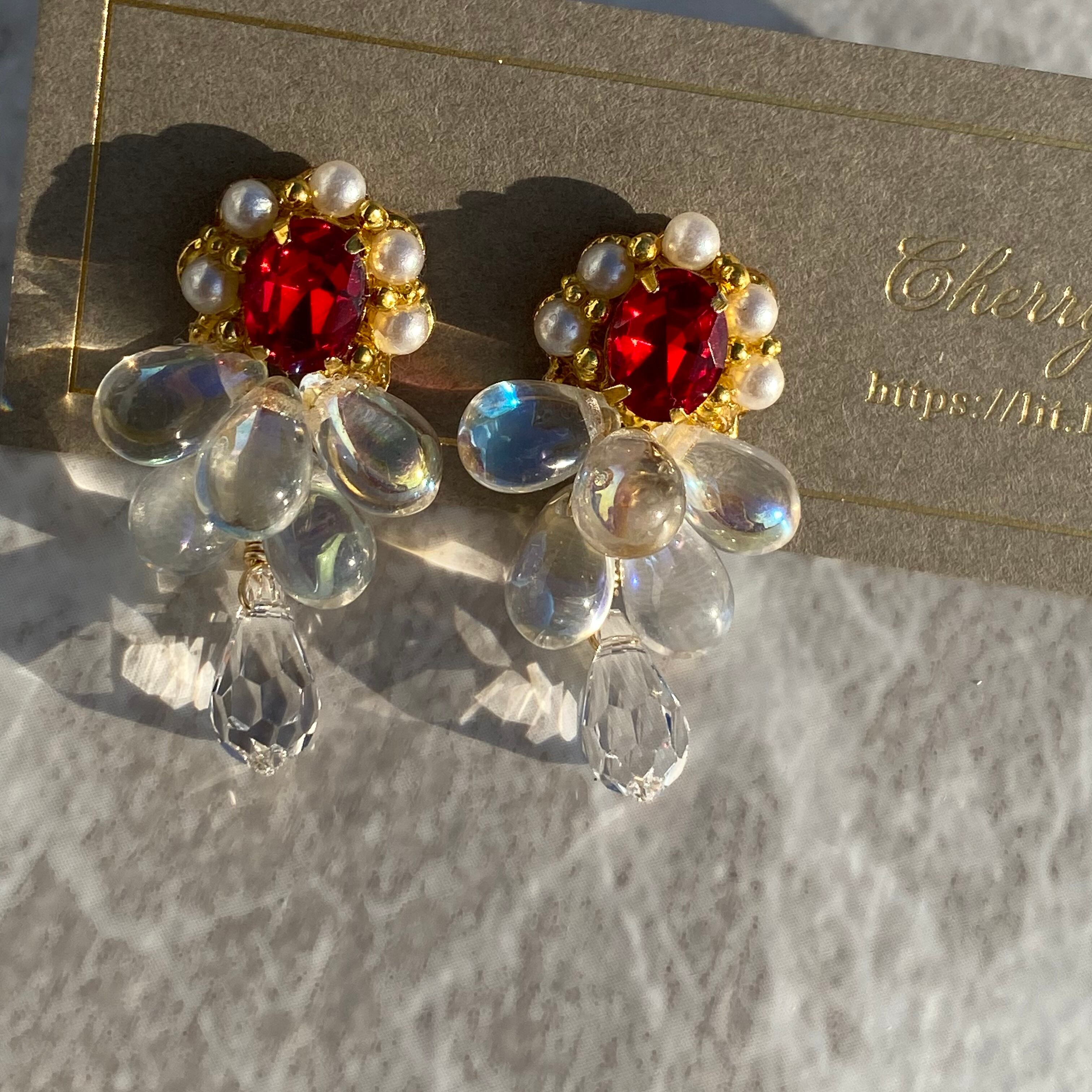 おとぎの国から抜け出した様な乙女心をくすぐるアクセサリー(ピアス イヤリング アレルギー対応 スワロフスキー 雫 ビジュー 赤 女子会 ウエディング パーティー ドレス)