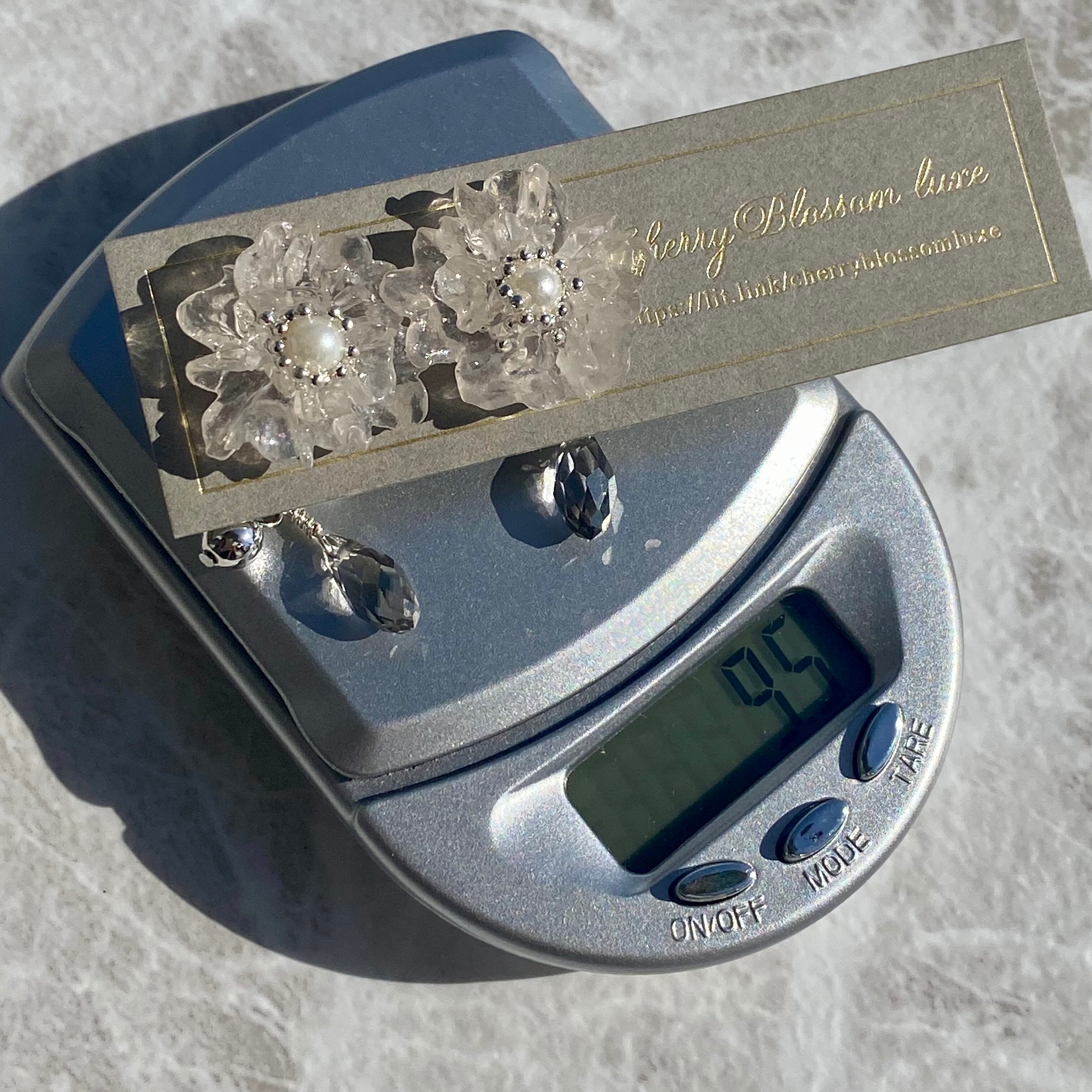 透明とシルバー色を基調とした程よい甘さのアクセサリー。
