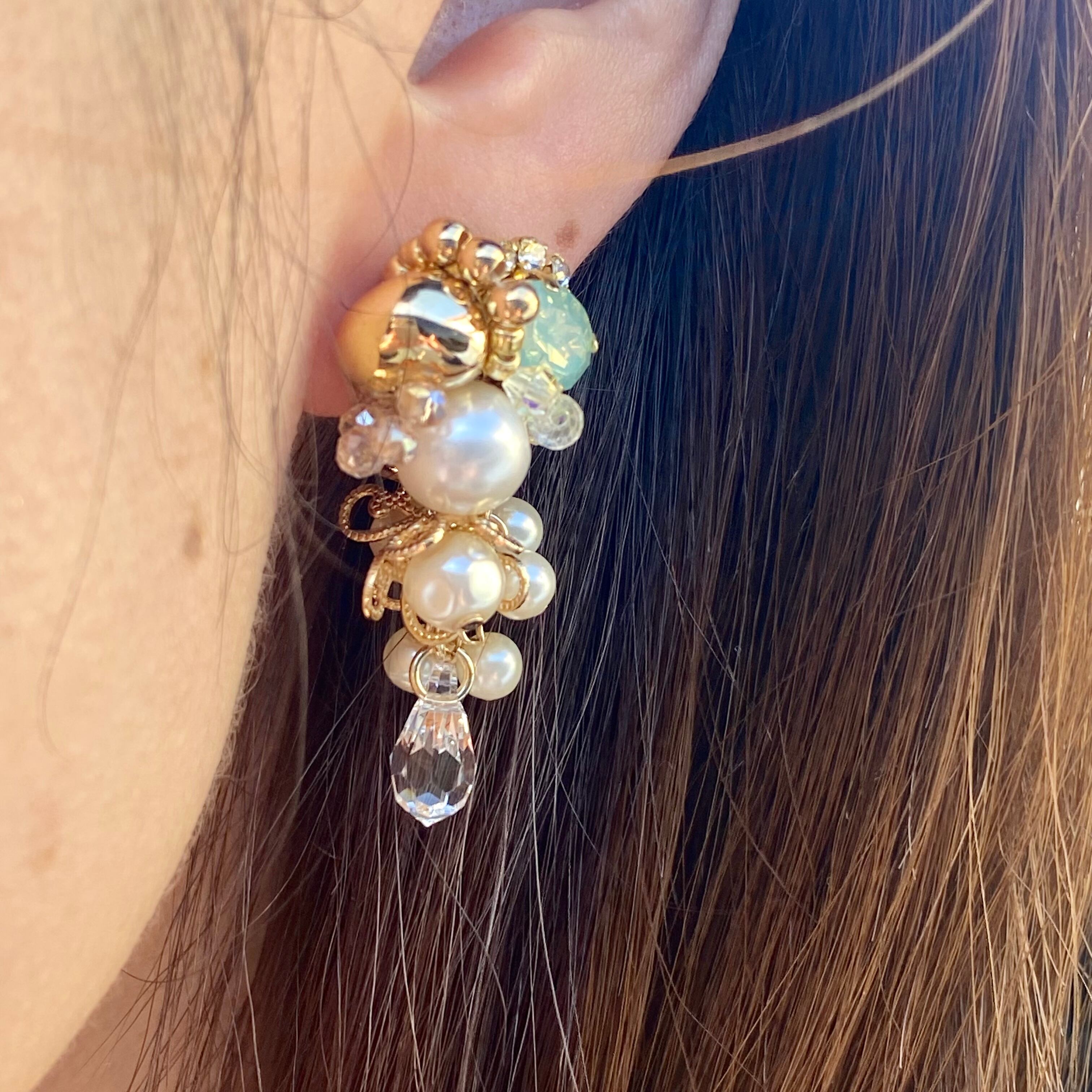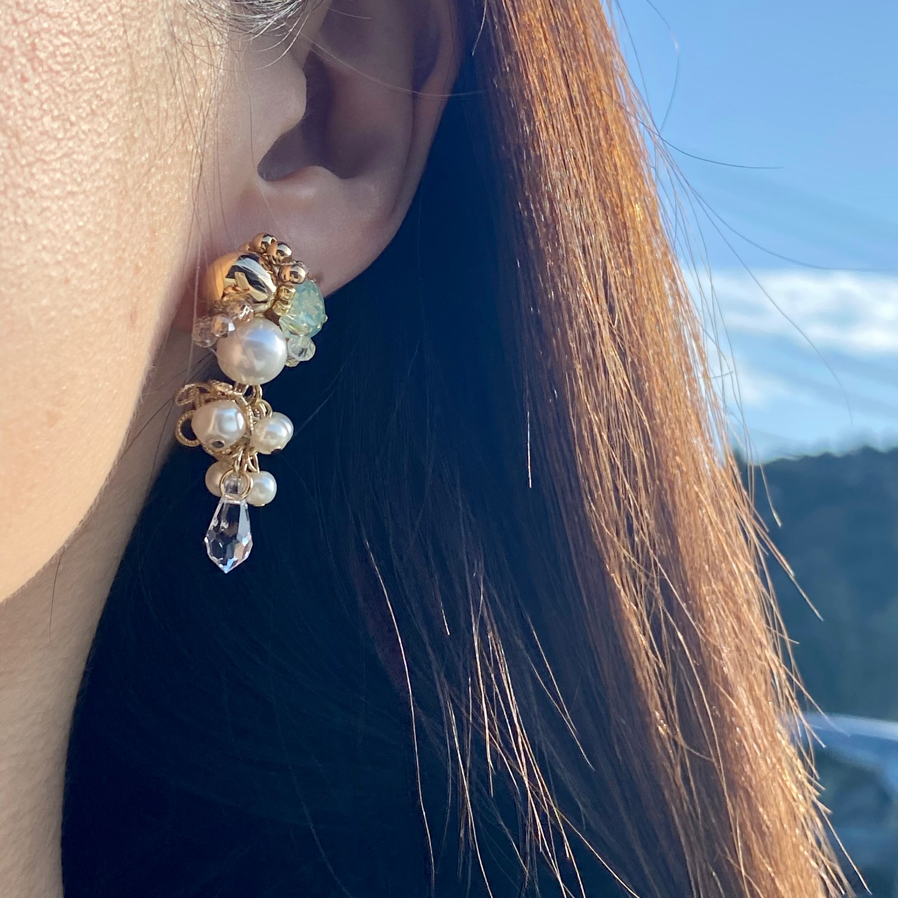 オパール風ビジューがポイントの女性らしいアクセサリー(ピアス イヤリング パール 卒業式 入学式 ウエディング 女子会 大人女子 お呼ばれ スワロフスキー 揺れ感 可愛い フォーマル)