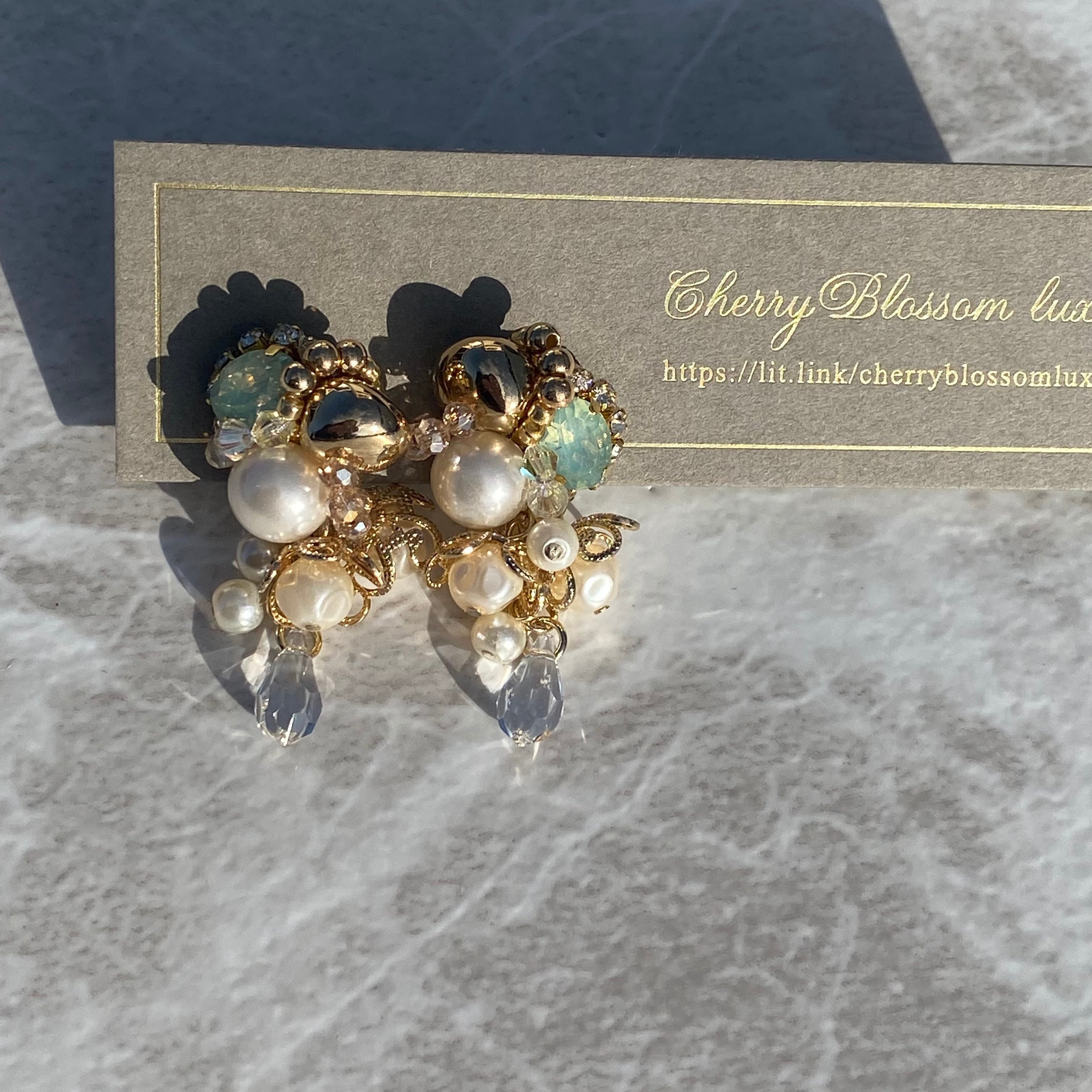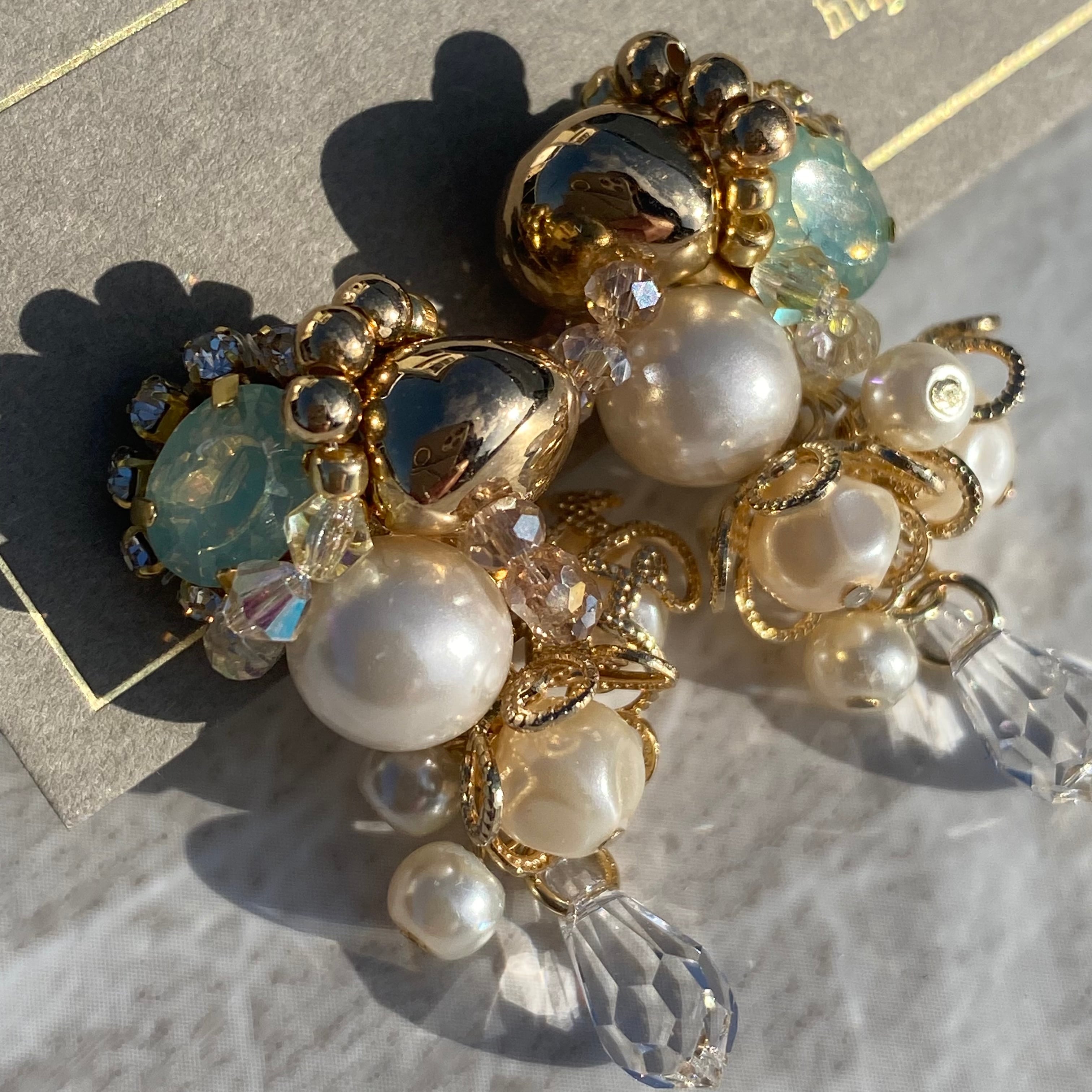 オパール風ビジューがチャームポイントの細部までこだわった繊細なアクセサリー。